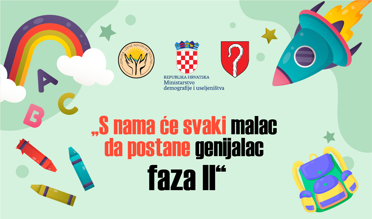Projekt „S nama će svaki malac da postane genijalac-faza II“ ima za cilj da provede edukativne, kulturne i sportske aktivnosti za 28-ro djece predškolske dobi i djece od 1.-4.razreda osnovne škole koji žive na području općine Biskupija
